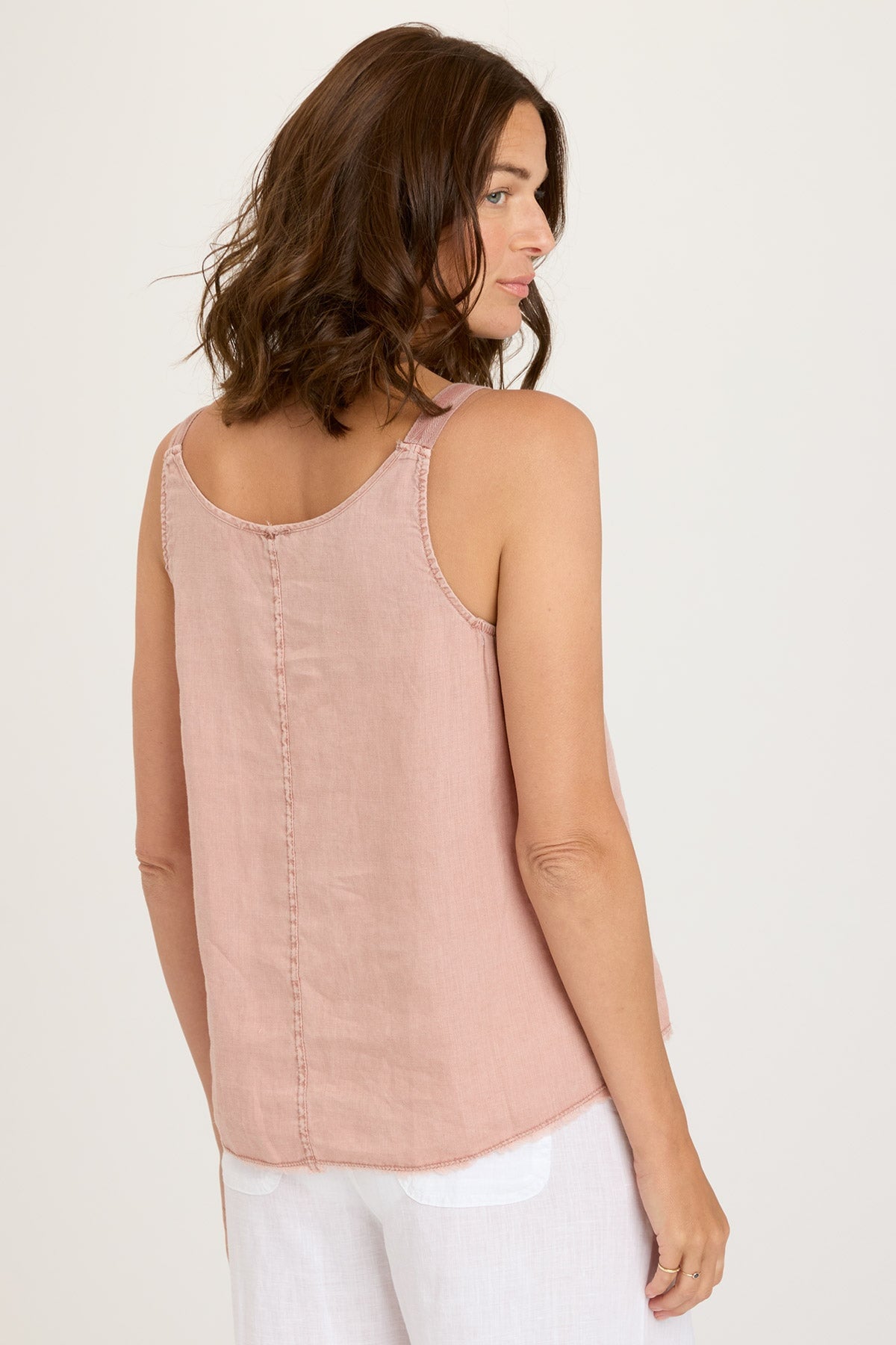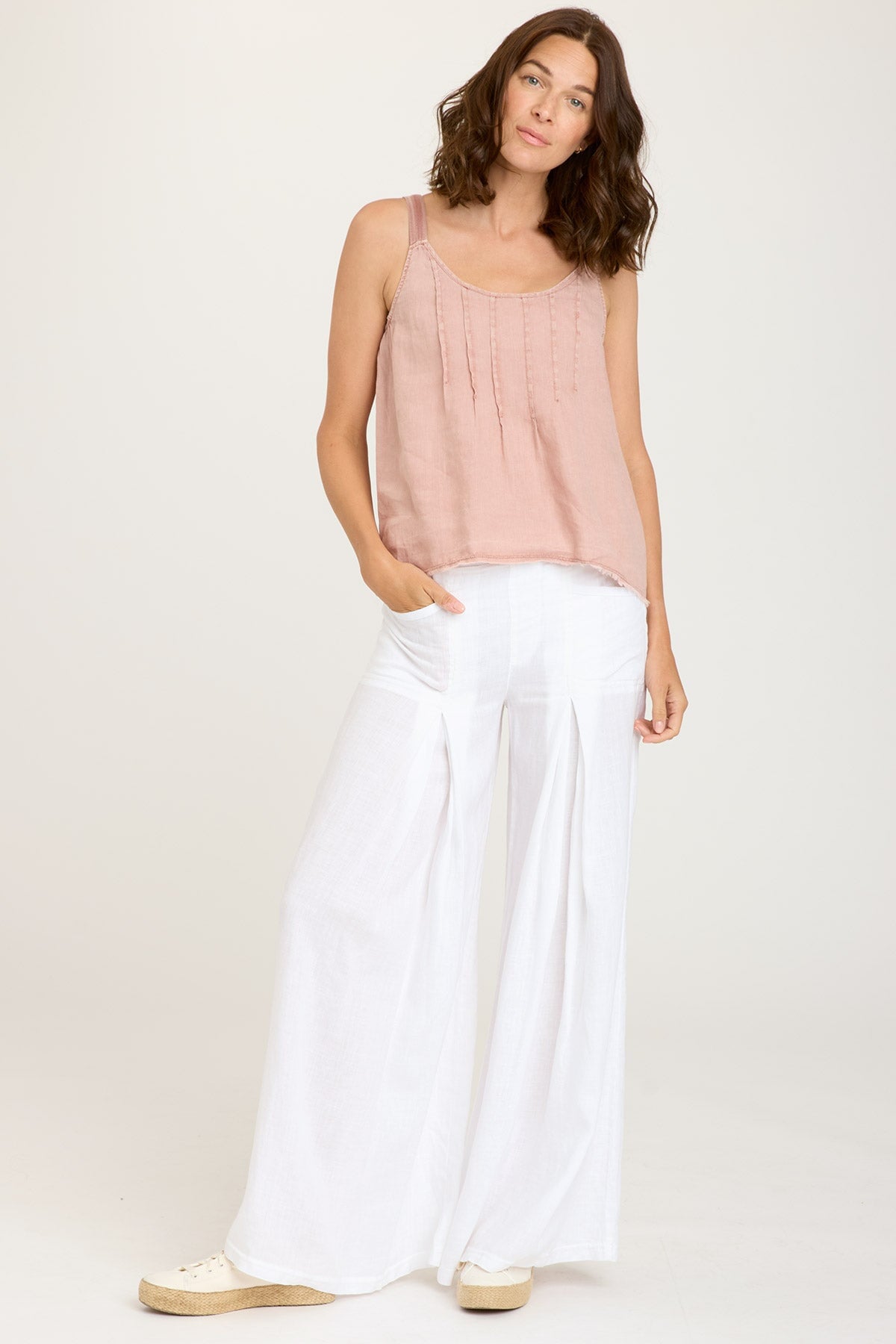 Pintucks along the front and a distressed hemline with small side slits bring detail to this billowy, feminine style.